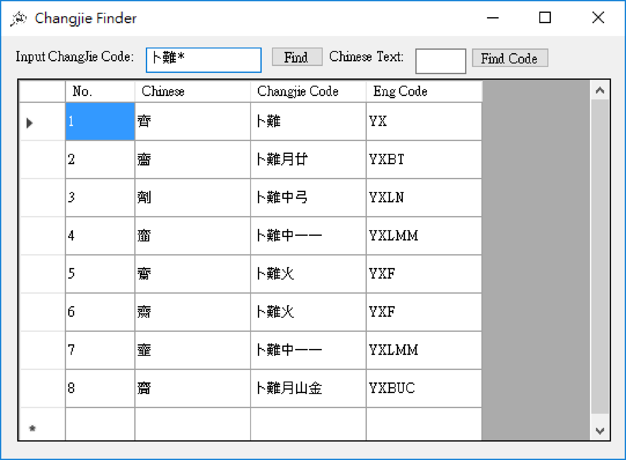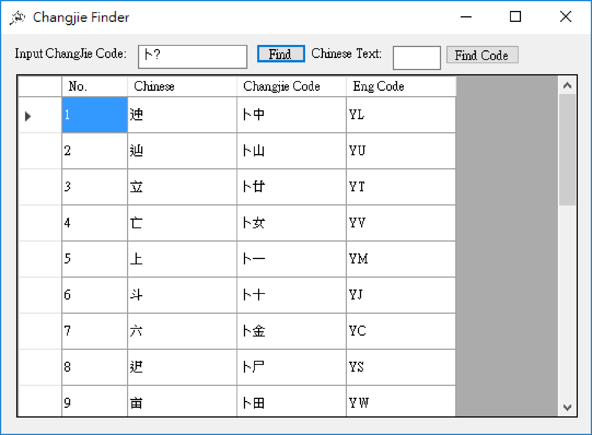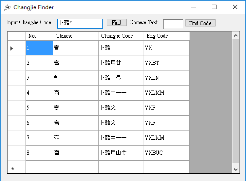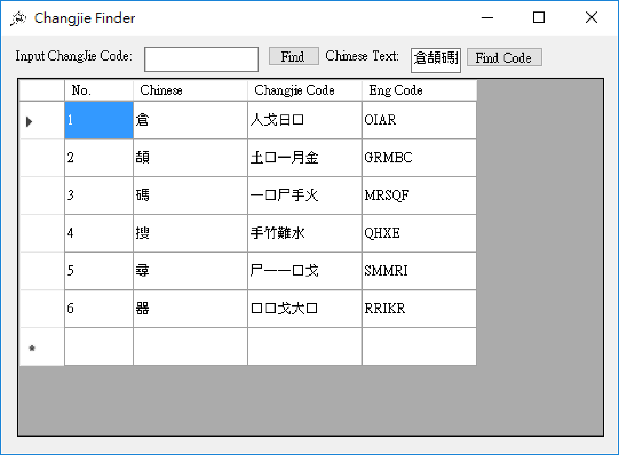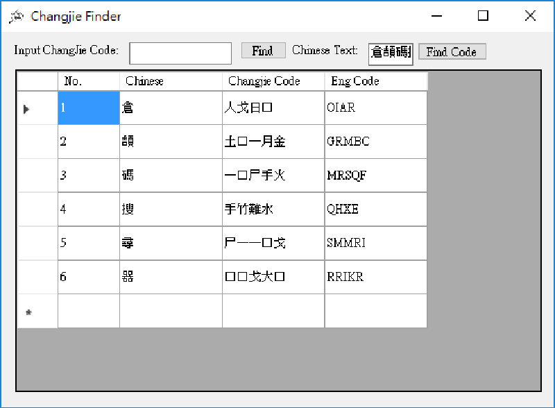 無論是倉頡老手或是熟習中的新手都需身傍的程式利器。今帶來搜尋倉頡碼的應用程式,幫助你學習及使用倉頡更得心應手。此應用程式是由網主編程及設計圖像。為方便用家搜尋,已加上萬用字符(Wildcard) 和單字代替符,還有轉譯成倉頡原碼功能,令搜尋更加強大。軟件更是完全免費。